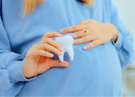 - Лечение кариеса, пульпита, периодонтита — при боли, воспалении, флюсе используется специальная анестезия, разрешённая во время беременности.