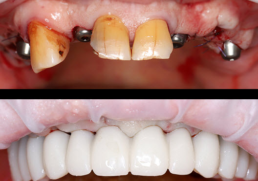 - Быстрое восстановление жевательной функции и эстетики улыбки, в отличие от множественной классической имплантации.